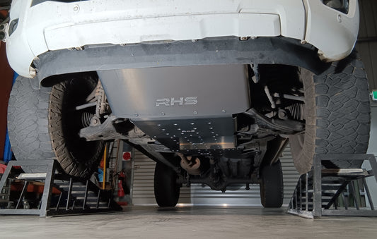 High strength Aluminium - The use of high strength Aluminium alloys means thinner Aluminium and hence even lighter plates can be used for the same material strength, or thicker plates can be used for greatly increased material strength. Removal of original equipment splash guards, bash plates and bash guards means any weight increase is less than the weight of RHS bash plates. Saving weight reduces stress on components, increases vehicle acceleration, and reduces fuel consumption, which reduces your carbon footprint.