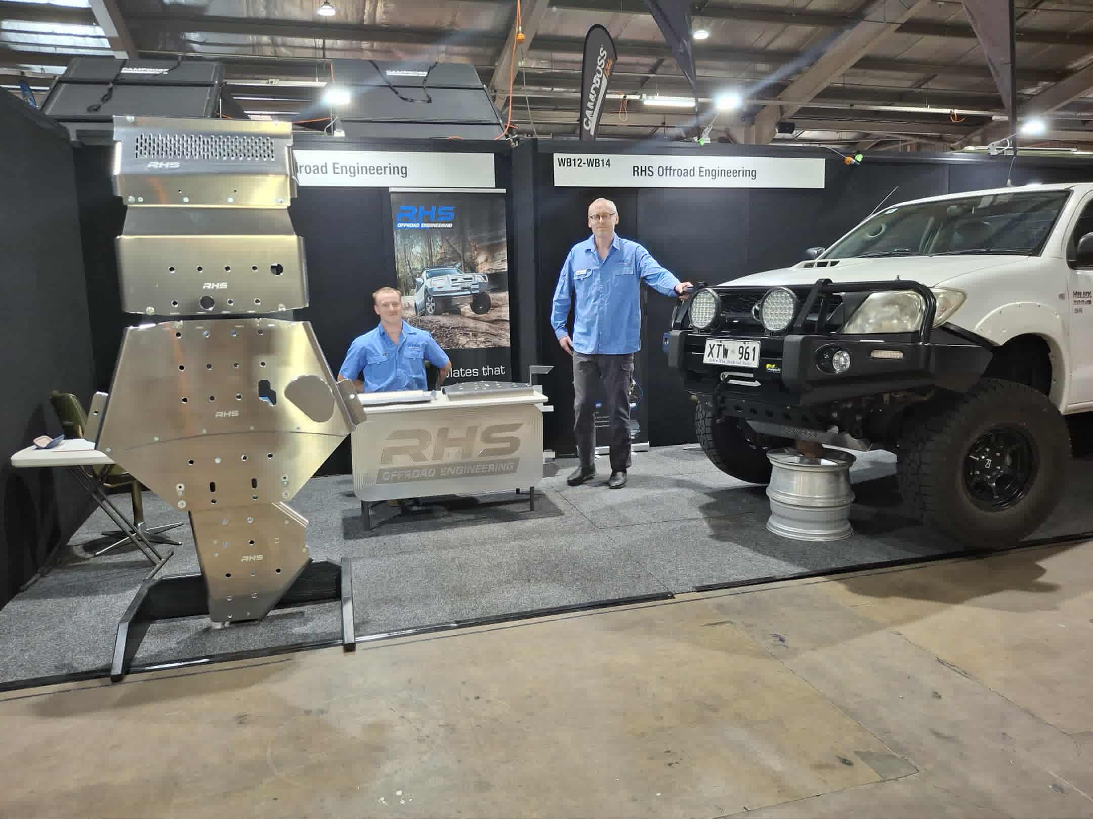 This year the size of our exhibit was tripled and the show attendance was bigger than ever before. We almost never stopped talking to people for the whole three days. We rested the entire front of a Hilux fitted with RHS Offroad Engineering bash plates atop a single point of rock with no damage to the bash plate!