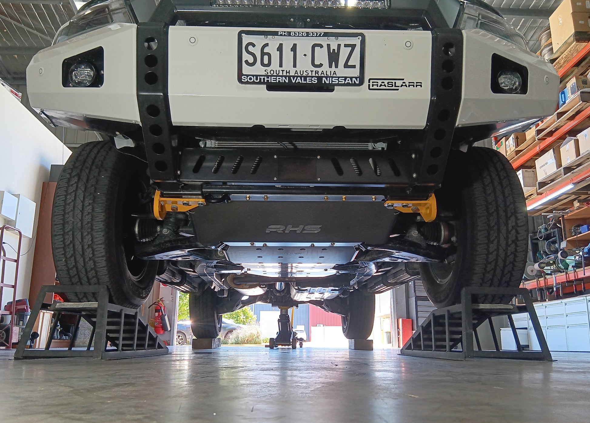 The factory supplied bash plates and guards weigh kg, and are removed to fit RHS bash plates. Therefore the weight gain is from kg to kg depending on the option chosen.