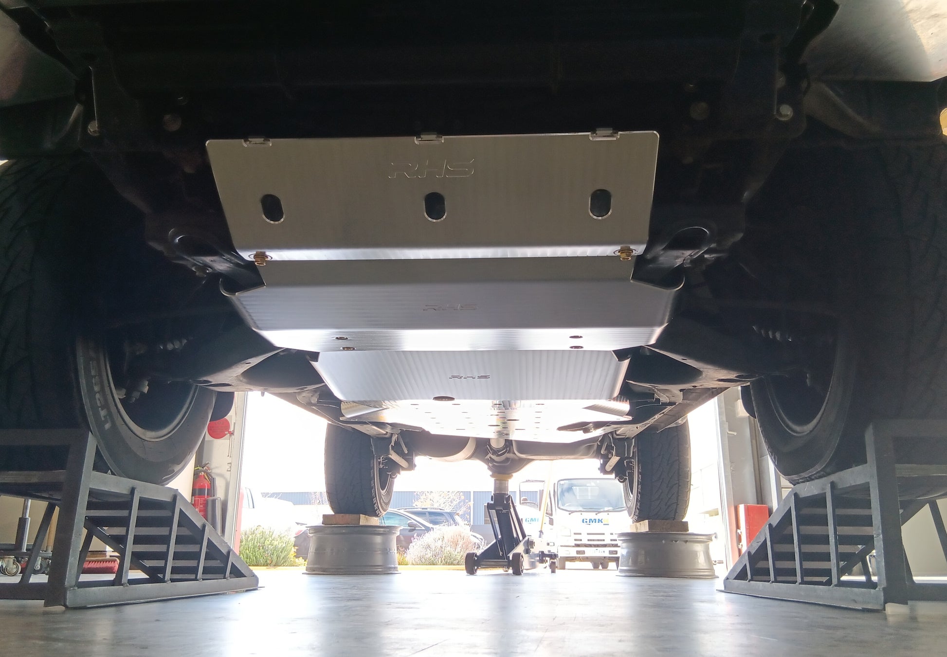 The factory supplied bash plates and guards weigh kg, and are removed to fit RHS bash plates. Therefore the weight gain is from kg to kg depending on the option chosen.
